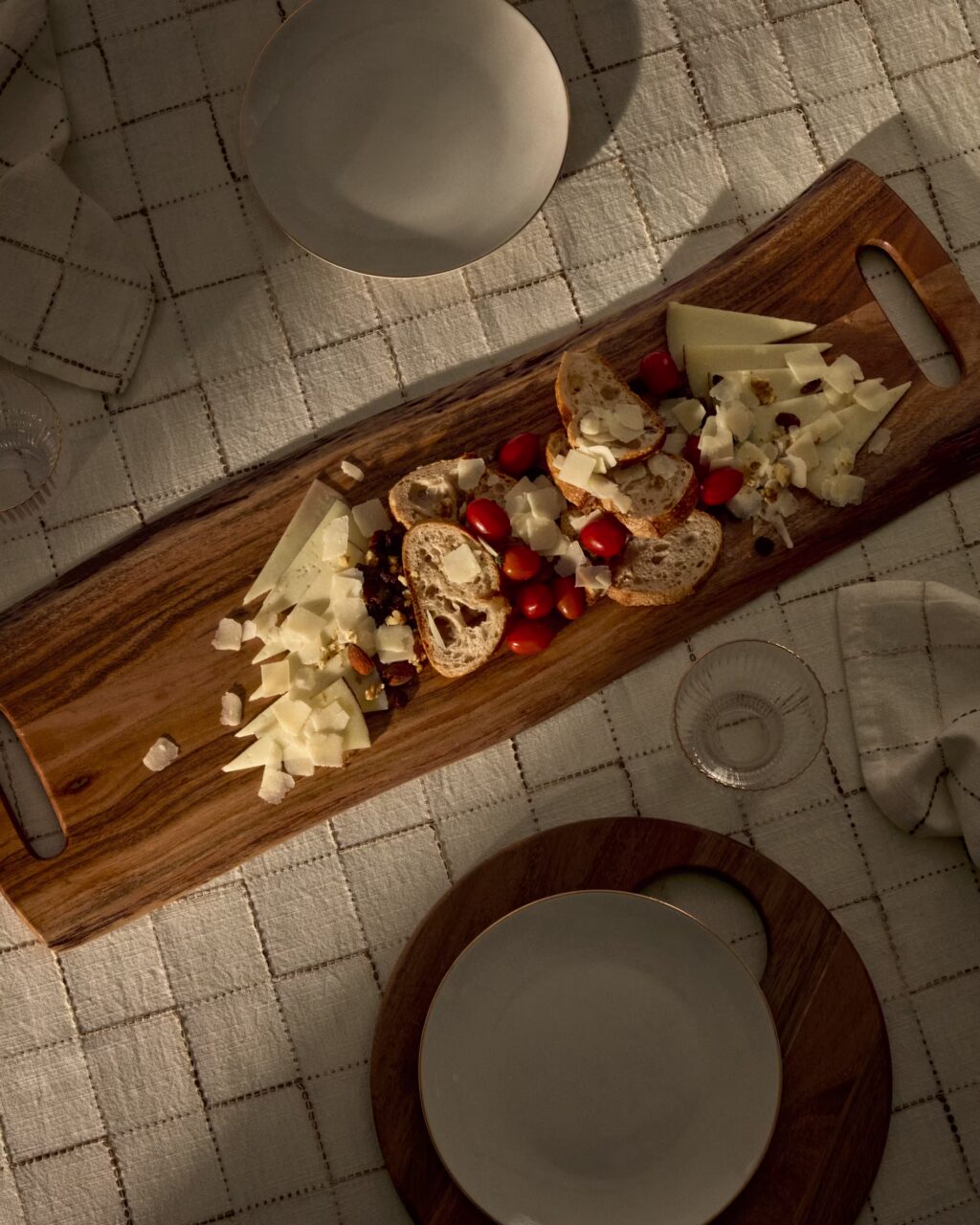 La sobremesa navideña tiene su propio ritmo: polvorones, turrones, licores caseros y conversaciones que se alargan sin prisa. Presentar los dulces en una tabla bonita convierte ese momento en un gesto aún más especial. La tabla de servir Zeun, elaborada en madera maciza de acacia, es perfecta para ello.