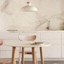 Por su parte, los espejos Selem cuentan con unos decorativos marcos de madera que remarcan la esencia del lugar. Potenciando la luz natural para airear el espacio y crear una ilusión de mayor amplitud. Como la lámpara suspendida, que permite crear una iluminación agradable cuando disminuya la entrada de luz solar.