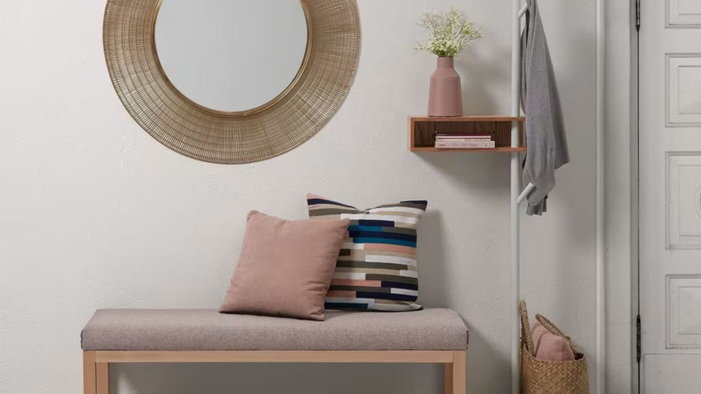 3. Recibidores nórdicos: espejo con perchero integrado y banco ligero