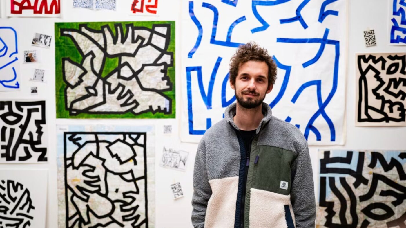 Bleg no viene de una academia de arte ni de un taller tradicional. Su formación como ingeniero y arquitecto lo empujó a mirar el espacio de otra manera. Y aunque empezó a pintar oficialmente en 2018, confiesa que su verdadera entrada al mundo creativo se dio en la adolescencia: «Mi inicio en el arte ocurrió en el instituto, cuando con unos amigos montamos un colectivo de collages digitales surrealistas y absurdos. Esa experiencia me marcó, y tras terminar mis largos estudios era natural que el arte volviera a mí».