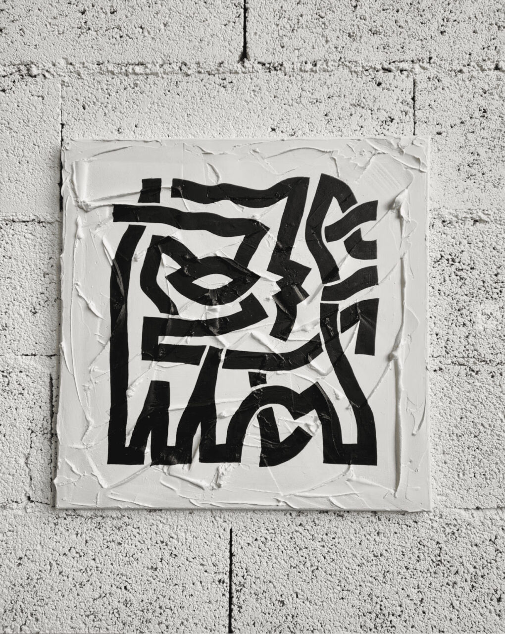 Sus figuras, a veces humanas y a veces cercanas a lo abstracto, funcionan como símbolos en clave contemporánea: te atrapan desde el primer momento, pero siempre dejan una puerta abierta a la interpretación. Lo interesante es que Bleg no persigue un resultado calculado, sino que abraza la espontaneidad como parte esencial de su proceso creativo. De ahí que cada obra sea, en cierto modo, un pequeño accidente feliz que acaba transformándose en lenguaje gráfico propio.