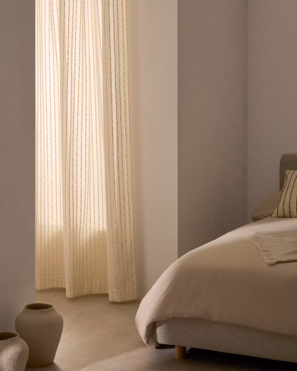 Una combinación de cortinas opacas y alfombras mullidas ayuda a absorber los sonidos exteriores y a crear un entorno envolvente y tranquilo. Opta por colores cálidos y materiales naturales: además de mejorar el descanso, aportan sensación de abrigo.