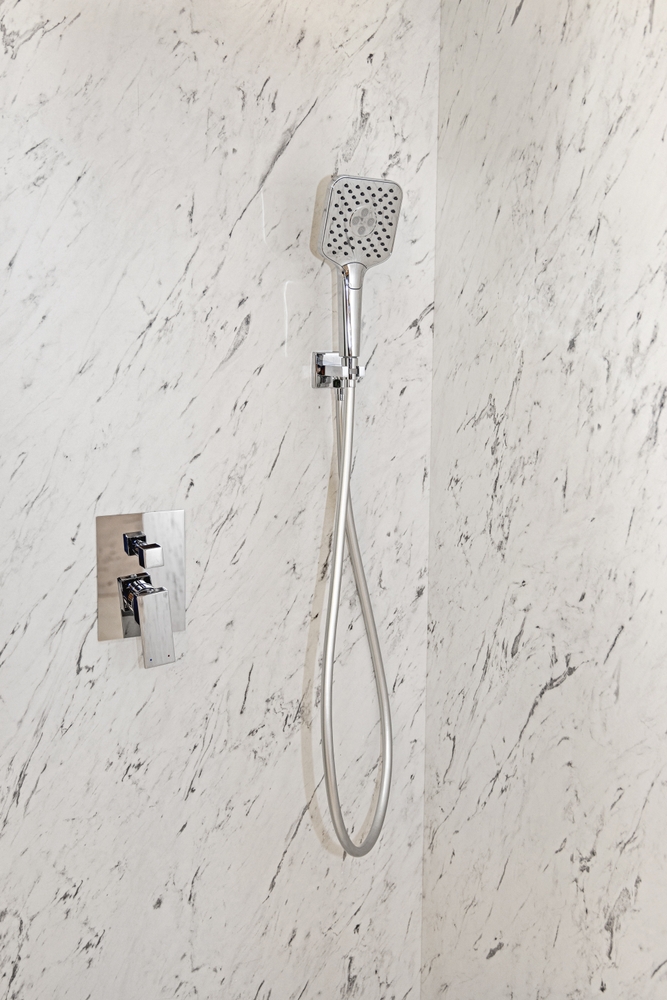 - Ducha con mosaico o gres antideslizante, práctica y agradable al tacto.