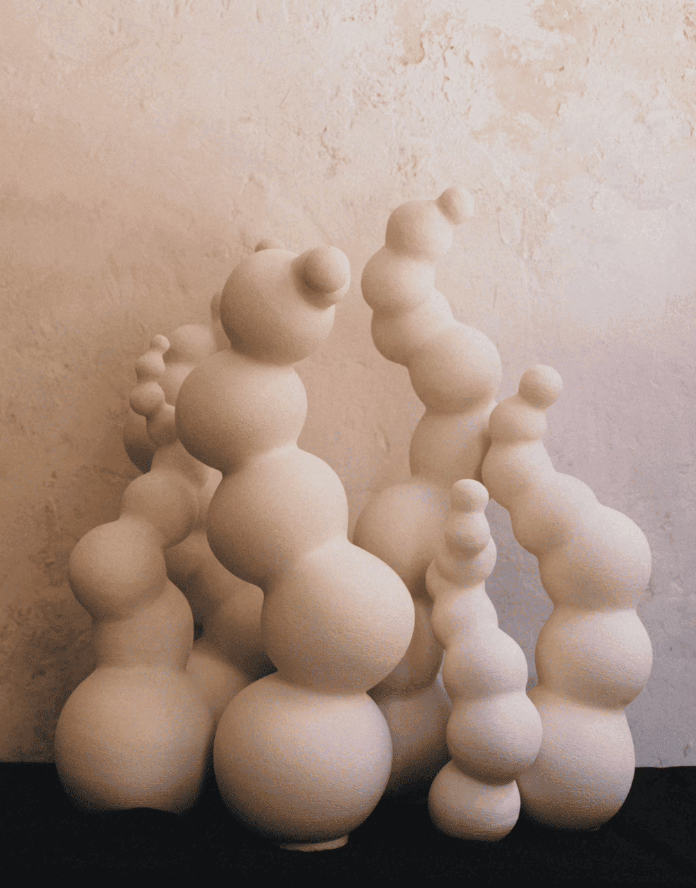 La cerámica de Areté d’Empordà en Kave Gallery se articula en tres colecciones que funcionan como capítulos de una misma investigación: Derviches, Finis Terrae y BARROco (con la “co” en minúscula, detalle que la artista subraya como parte del concepto).