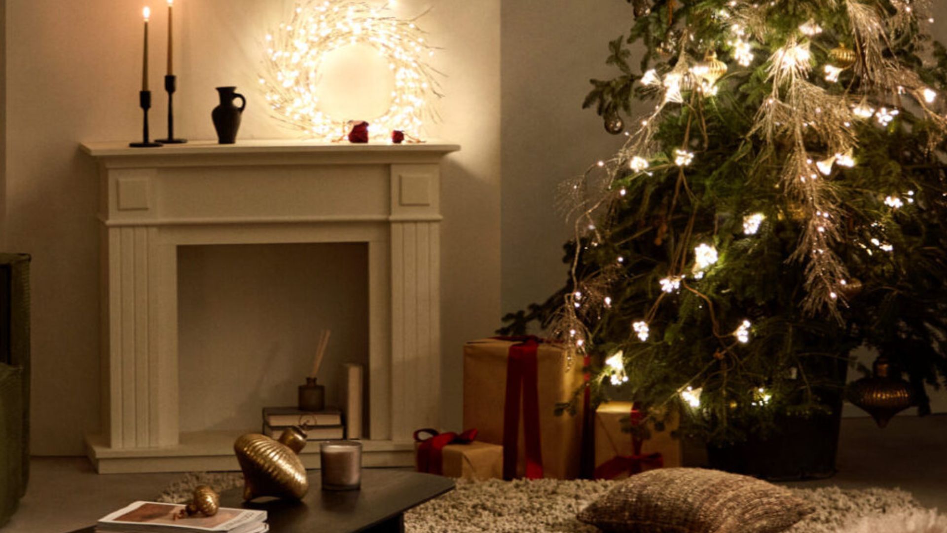 Situar el árbol junto a una ventana o un ventanal es una de las opciones más agradecidas. La luz natural acentúa los tonos verdes y la calidez de las luces, y desde el exterior también regala una estampa acogedora. Es perfecto si tienes un salón luminoso o un comedor que recibe sol durante el día.