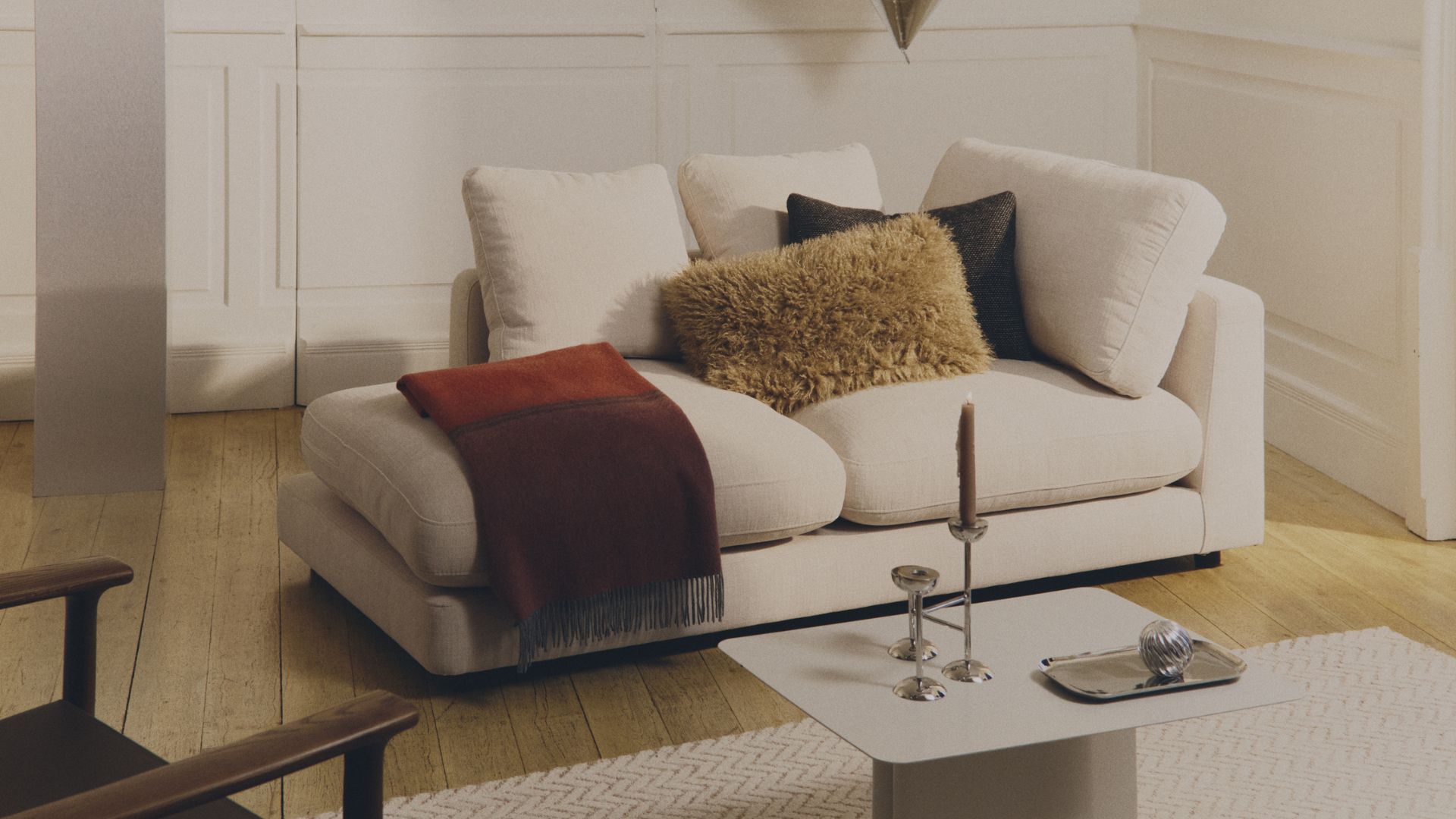 Un hogar calmado no tiene por qué sentirse neutro o impersonal. Al contrario. Cuando decoramos pensando en el descanso, damos valor a lo sensorial, con textiles agradables al tacto, alfombras abrigadas que amortiguan los ruidos, cortinas que tamizan la luz, muebles curvos y cómodos…