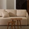 El bouclé, para ser más específicos, es un tipo de tejido hecho de hilo con nudos que se ha convertido en uno de los materiales más populares en la decoración de interiores. Su textura es irregular y suave al mismo tiempo, siendo una opción perfecta para tapizar muebles y crear ambientes acogedores. En otras palabras, una textura muy agradable al tacto que en los últimos años se ha convertido en una de nuestras favoritas por su versatilidad y elegancia.