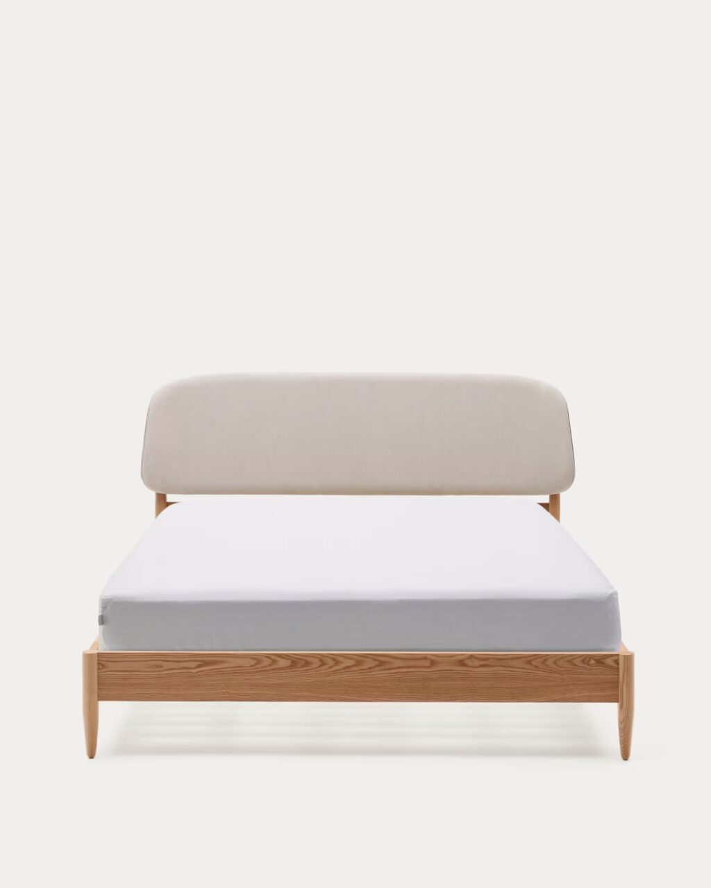 1. Cama Octavia: madera cálida y suavidad tapizada
