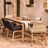 Colocadas en zonas de comedor o estar, suavizan el ambiente y hacen que el espacio se perciba más vivido. La combinación de una base de madera con textiles resistentes transforma por completo la experiencia, aportando confort durante más meses del año.
