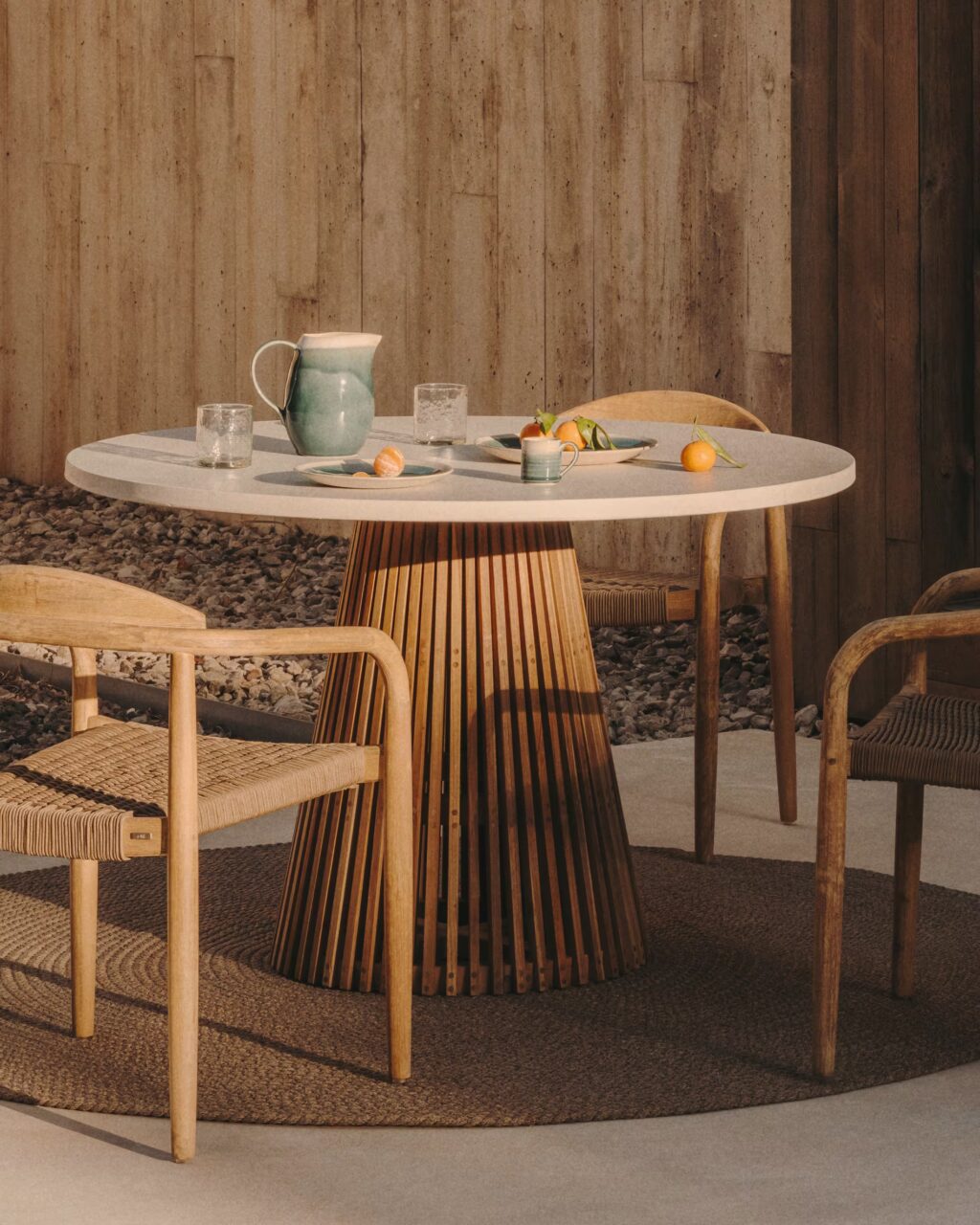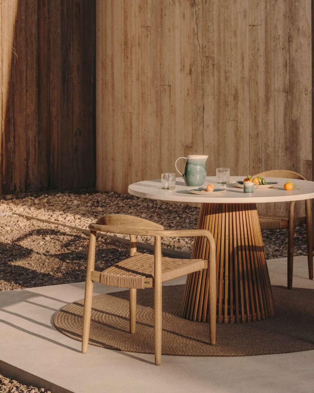 La mesa es, a menudo, el lugar donde el exterior se convierte en punto de encuentro. Apostar por materiales sólidos permite que ese espacio permanezca estable con el paso de las estaciones.