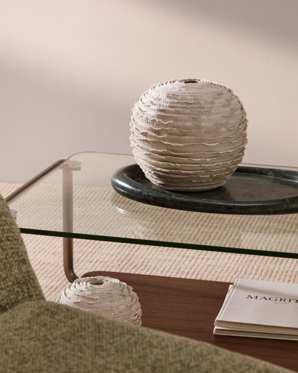 - En el salón, puedes integrarlo en piezas metálicas o lámparas, siempre acompañado de texturas cálidas como lino o algodón.