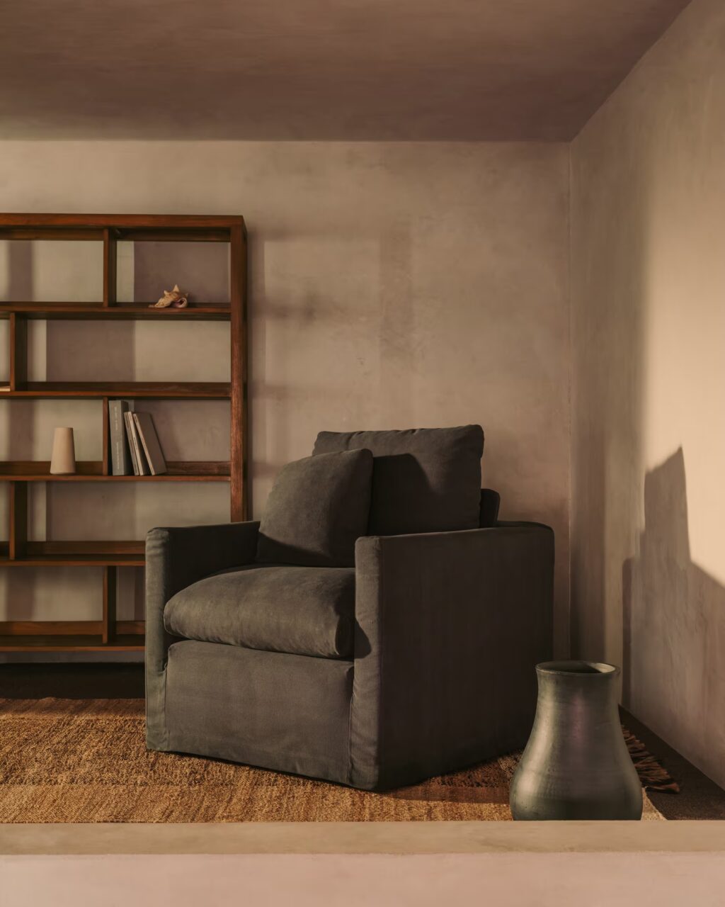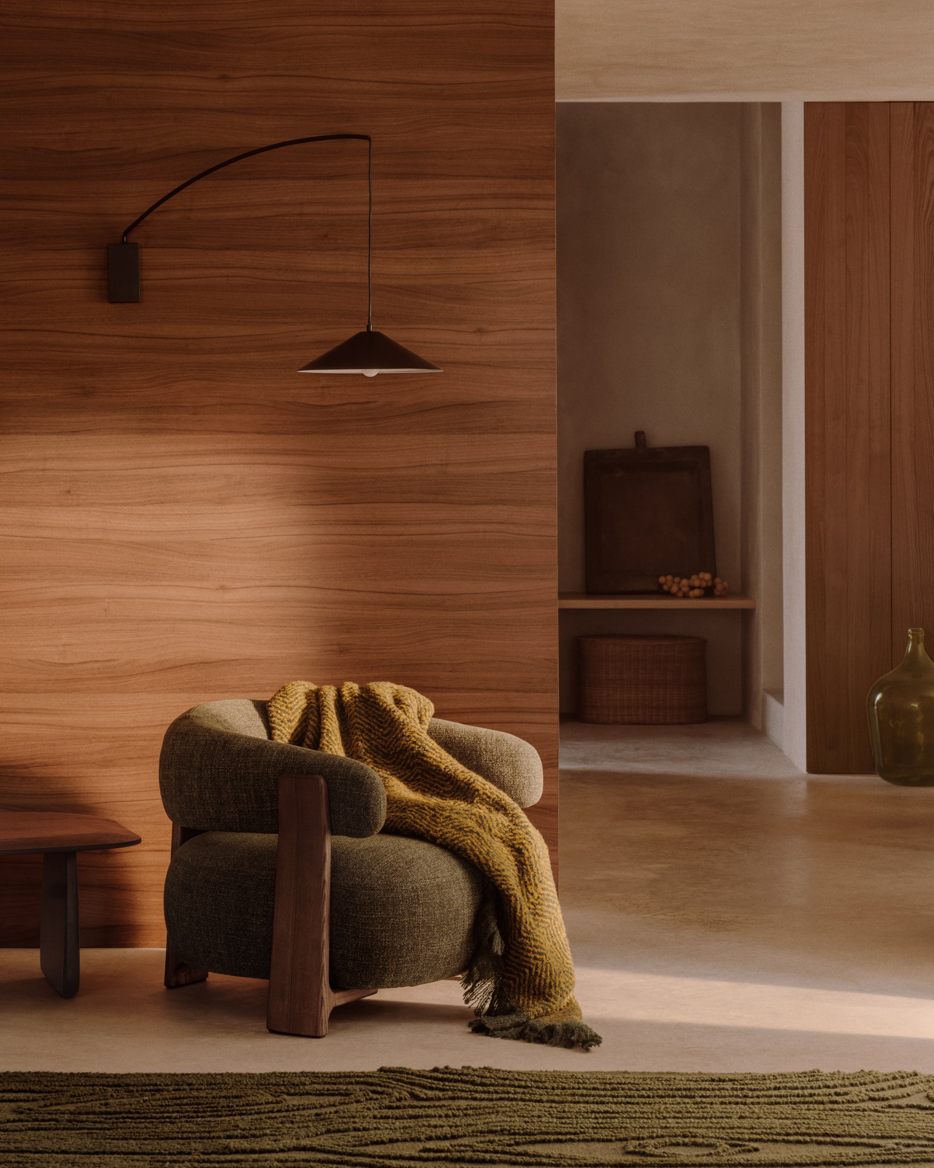 La sensación de comodidad no se logra únicamente con un buen asiento. También importan los tejidos que lo acompañan, como mantas de lana gruesa, cojines mullidos de algodón o lino, plaids de punto y suaves alfombras que invitan a posar los pies descalzos.