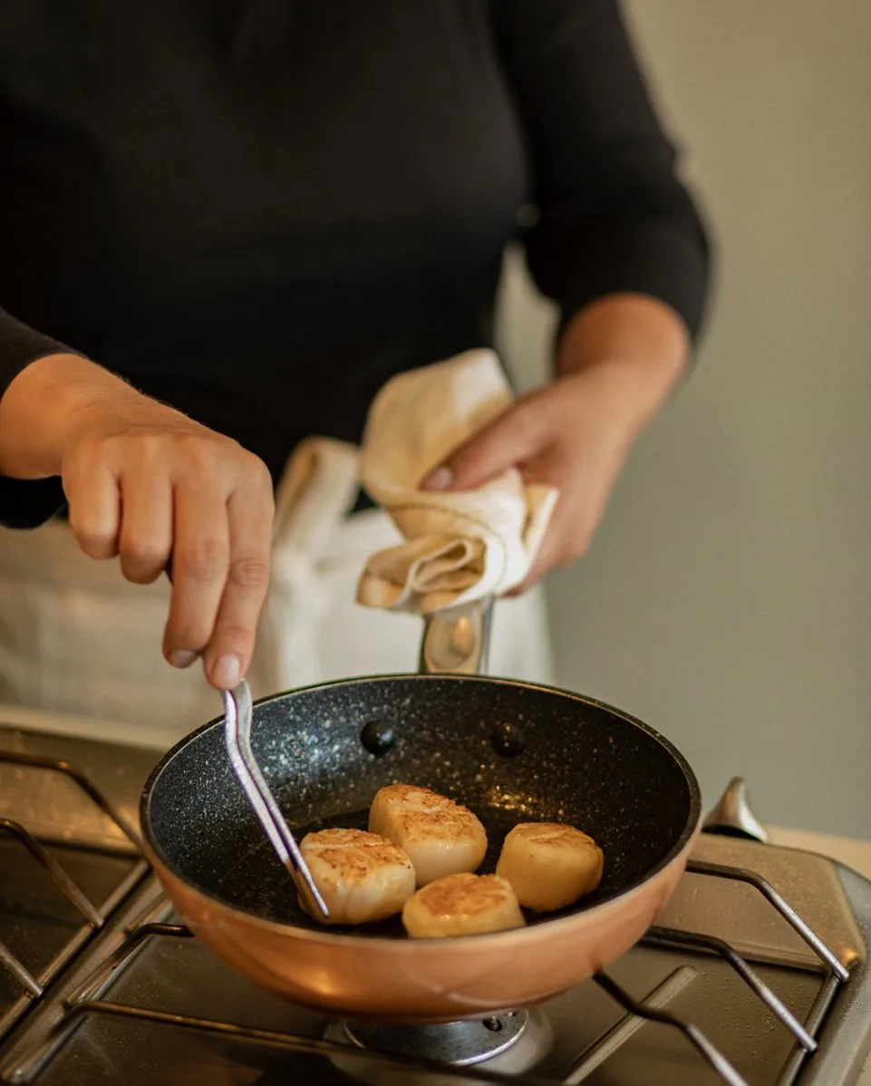 - Limpia y seca bien las vieiras: elimina cualquier resto de humedad para conseguir un dorado perfecto.